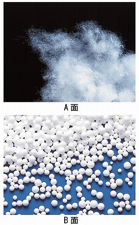 ●材質/A面中材:中空ポリエステルファイバー、生地:ウェーブニット(綿・ポリエステル)、B面中材:ポリスチレンビーズ、側地:ツイル(抗菌防臭加工)