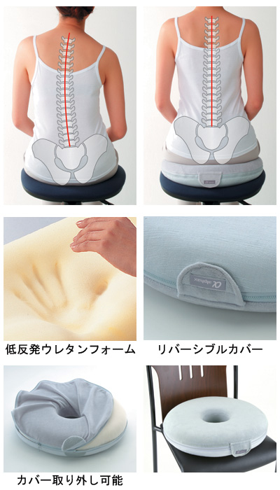 ・お医者さん考案の低反発クッション。リバーシブルのカバーは洗濯もOK。