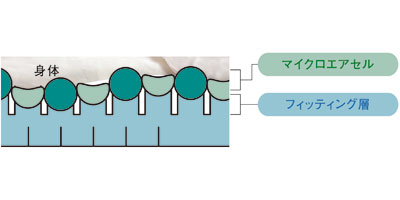 ●材質/マイクロエアセル:ウレタンフィルム、フィッティング層・底づき防止層:高耐久ポリウレタンフォーム・インナー保護フィルム:ポリエチレン