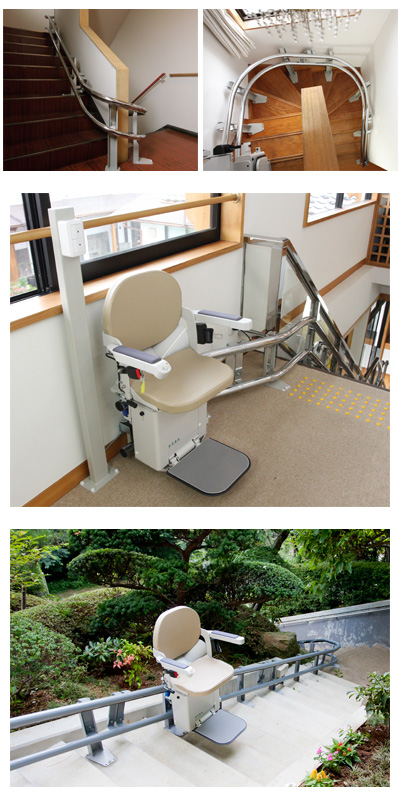・未使用時は座面・肘掛け・ステップを折りたたんでコンパクトに収納。階段の通行の妨げになりません。