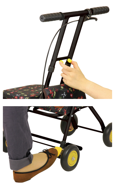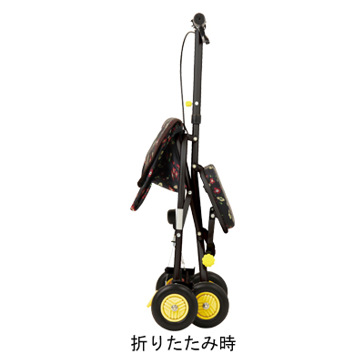 ●サイズ/幅41.5×奥行49.5×高さ76.5〜90.5(4段階/4.7cm)cm、折りたたみ時:奥行21.5×高さ82.5cm、座面:幅25×奥行17.5cm、座面高:43.5cm ●車輪サイズ/前輪12.2×後輪12.2cm ●重さ/約2.95kg ●材質/フレーム:アルミ、バッグ:ポリエステル ●バッグ容量/4L ●積載荷重/1.5kg ●最大使用者体重/80kg ●標準機能/折りたたみ、1WAYキャスター(固定)、手元ブレーキ、駐車ブレーキ、座面、杖・傘立て ●SGマーク取得商品