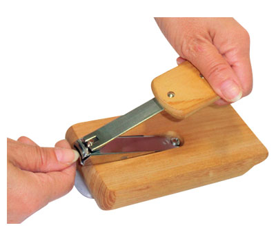 ・少しの力で押さえて簡単爪切り。木台を回転させて向きを調整。