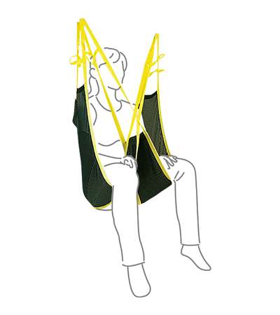 ・背中から太ももまでを包み込むスリングシートです。脚部を交差しサポートします。