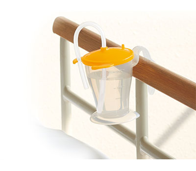 ・ベッド柵にも手にもぴったりフィットする、こぼしにくいストローカップ。