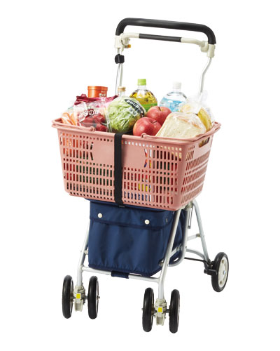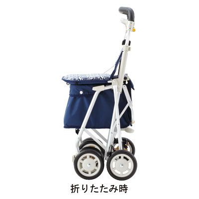 ●サイズ/幅45×奥行55×高さ88〜97(4段階/3cm)cm、折りたたみ時:奥行31×高さ80.5cm、座面:幅32.5×奥行24.5cm、座面高:45cm ●車輪サイズ/前輪14.5×後輪14.5cm ●重さ/4.2kg ●材質/フレーム:アルミ・一部プラスチック、バッグ:ナイロン ●バッグ容量/15.8L ●積載荷重/12kg ●最大使用者体重/100kg ●標準機能/折りたたみ、3WAYキャスター(360°・左右40°・固定)、手元ブレーキ、駐車ブレーキ、座面、杖・傘立て ●生産国/台湾 ●SGマーク取得商品