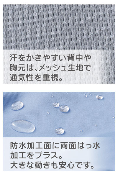 ・汗をかきやすい背中や胸元は、メッシュ生地で通気性を重視。