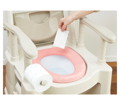 ・クエン酸配合処方により、あらかじめ水を溜めたポータブルトイレのバケツに入れておくだけで、尿の放置が原因で持続的に発生するニオイを消臭する消臭シートです。消臭シートは1枚入れるだけで手軽に使え、水に溶けるタイプなのでトイレにそのまま一緒に流せます。