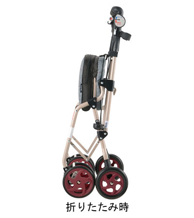 ●サイズ/幅43×奥行52×高さ85〜91(3段階/3cm)cm、折りたたみ時:奥行31×高さ87〜93cm、座面:幅30×奥行25cm、座面高:43cm ●車輪サイズ/前輪15×後輪15cm ●重さ/3kg ●材質/フレーム:アルミ、バッグ:ポリエステル ●バック容量/2.2L ●積載荷重/1.5kg ●最大使用者体重/80kg ●標準機能/折りたたみ、3WAYキャスター(360°・左右45°、固定)、手元ブレーキ、駐車ブレーキ、座面、杖・傘立て ●生産国/中国 ●SGマーク取得商品