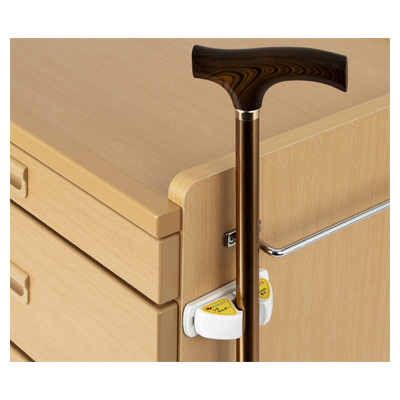 ・引出しはシリンダー錠付きで貴重品の管理も安心。食事用スライドトレーは3段式レールで奥までしっかり引き出せます。