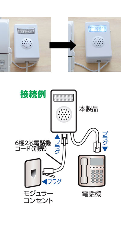・電話機に接続して、発光とベル音で着信をお知らせするフラッシュリンガー。