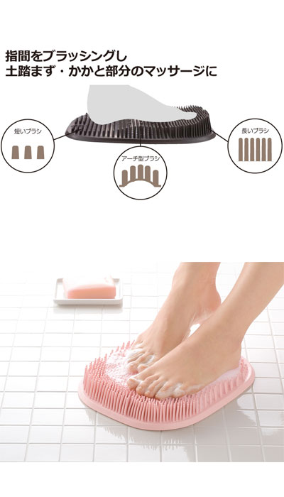 ・指間をブラッシングし、土踏まず・かかと部分のマッサージに。