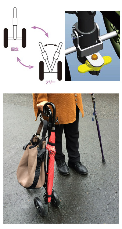 ・ステッキ(別売)と一緒に使うとより安定して歩行することが可能。