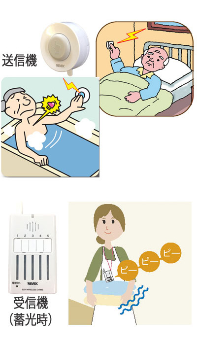 ●サイズ/送信機:幅6×奥行2.7×高さ7cm、受信機:幅5.7×奥行2.7×高さ11cm ●重さ/送信機:約38g、受信機:60g ●材質/ABS樹脂 ●電源/送信機:ボタン電池CR2032×2、受信機:単3形乾電池×3 ●無線到達距離/屋外見通し約150m、屋内見通し約60m ●付属品/送信機用電池、送信機取り付け用両面テープ、取付用ネジ、取付用リブ、IDコード切替用ミニドライバー ●生産国/中国 ●防滴加工(送信機のみ) ●一方向