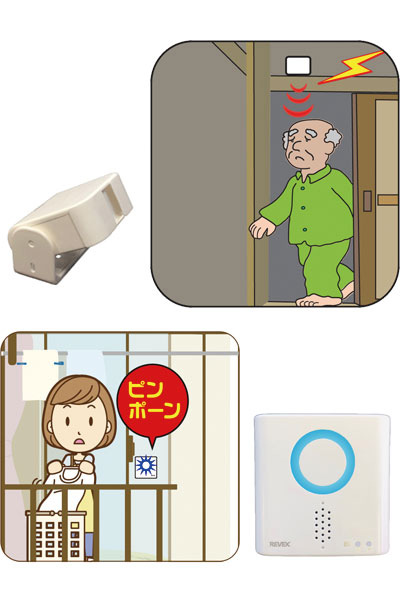 ●サイズ/送信機:幅7.7×奥行3.5×高さ8.3cm、受信機:幅9×奥行3.2×高さ9.1cm ●重さ/送信機:約82g、受信機:約85g ●材質/ABS樹脂 ●電源/送信機:AC100Vまたは単4形乾電池×3、受信機:AC100Vまたは単3形乾電池×3 ●無線到達距離/屋外見通し約180m、屋内見通し約90m ●付属品/送信機取り付け用両面テープ、取付用ネジ、取付用リブ、IDコード切替用ミニドライバー ●生産国/中国 ●防滴加工(送信機のみ) ●一方向
