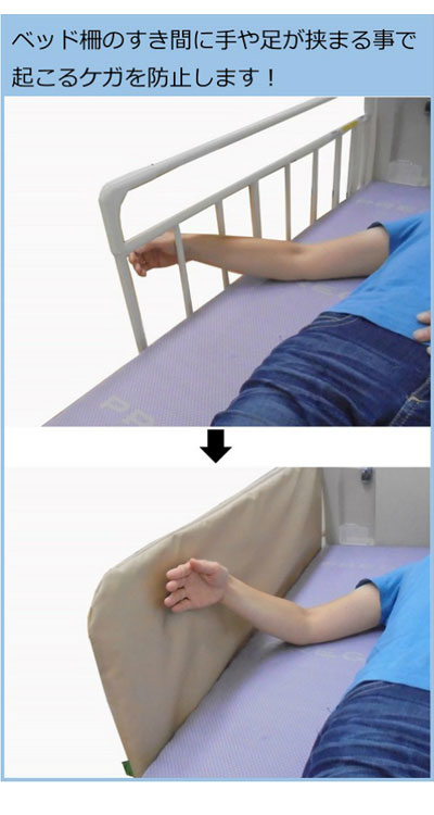 ・ベッド柵のすき間に手や足が挟まる事で起こるケガを防止します。