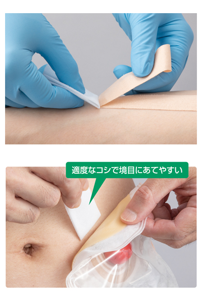 ・ワイプシートに適度なコシがあり、使用時にヨレにくいので、ストーマ装具と皮膚の境目に的確にシートをあてながら剥離できます。