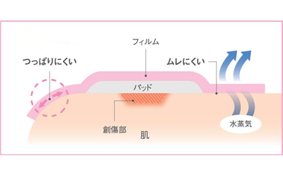 ・防水フィルムなので入浴時も水からしっかり傷を守ります。ムレにくく肌を清潔・快適に保ちます。