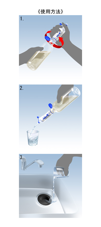 1.市販のペットボトルにmizu-QPLUSを取り付けます。