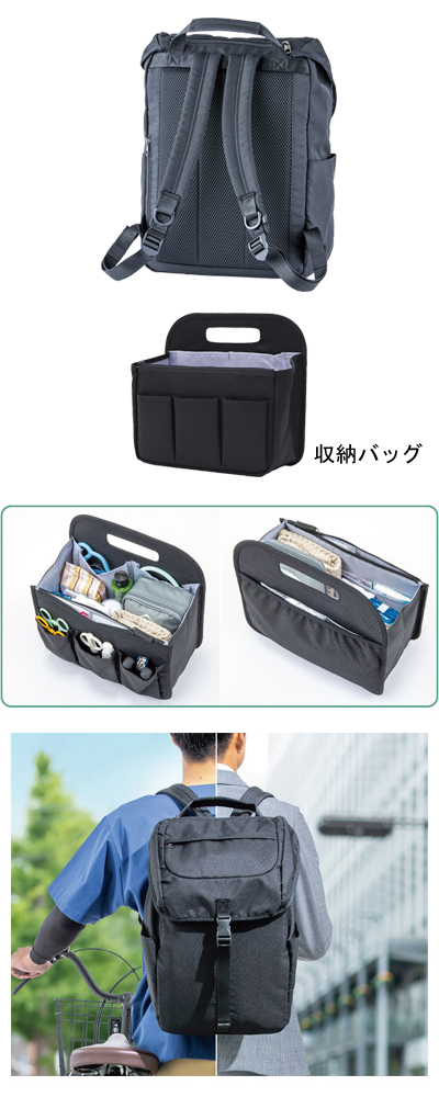 ・大容量28L:訪問介護に必要な荷物がリュックと収納バッグに収まります。