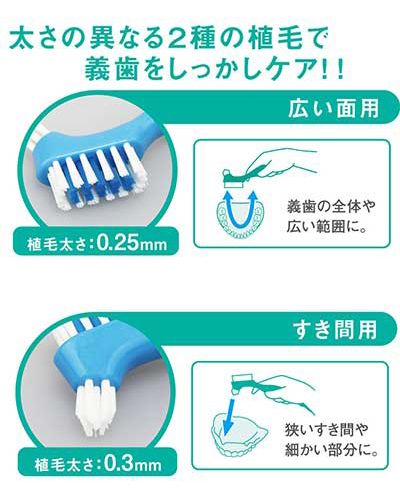 ・太さの異なる2種類の植毛で入れ歯をしっかりケア!