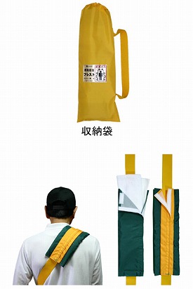 ●材質/本体・肩パット・収納袋:ナイロン&ハイパロンコート加工、ベルト:ポリプロピレン、滑り止め:ポリエステル&アクリルドット加工、アタッチメント:ポリアセタール、サラシ:綿100%(無蛍光)、タオル:綿100%