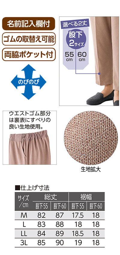おしりスルッとカチオンライトパンツ 婦人用 / 89880-31 股下55cm M ベージュ