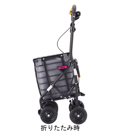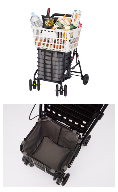 ●サイズ/幅50×奥行58×高さ82〜90.5(4段階)cm、折りたたみ時:奥行41×高さ88.5cm、座面:幅31×奥行31cm、座面高:49cm ●車輪サイズ/前輪13×後輪13cm ●重さ/4.55kg ●材質/フレーム:アルミ・プラスチック ●バッグ容量/約23L ●積載荷重/12kg ●最大使用者体重/100kg ●標準機能/折りたたみ、3WAYキャスター(360°・左右40°・固定)、手元ブレーキ、駐車ブレーキ、座面、杖・傘立て ●生産国/台湾 ●SGマーク取得商品