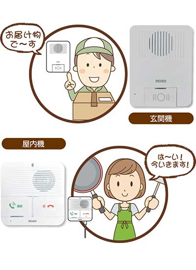 ・配線不要で取付簡単。来訪者等とお話しできます。