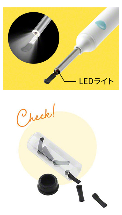 ・6つのLEDライトで奥までしっかり照らす。先端に搭載された6つのLEDライトが見えにくい部分もしっかりと照らします。全体がはっきり見え、安心して耳かきに集中できます。