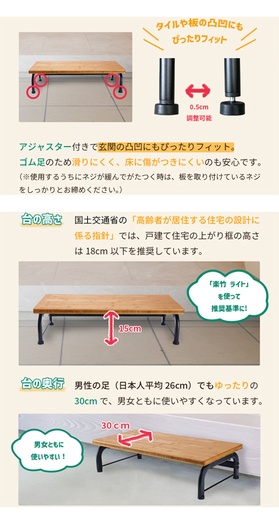 ・アジャスター付きで玄関の凸凹にもピッタリフィット。細やかな調整でがたつき防止。