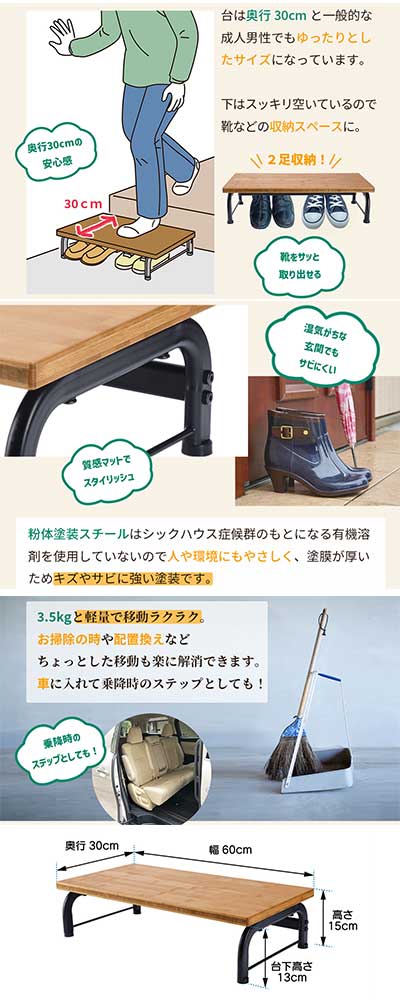 ・玄関の段差を減らしてひざや腰の負担をやわらげる玄関ステップ。