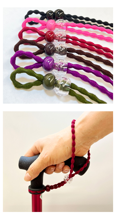 ・両手が自由に使えて、手首にやさしいゴム製ストラップ。