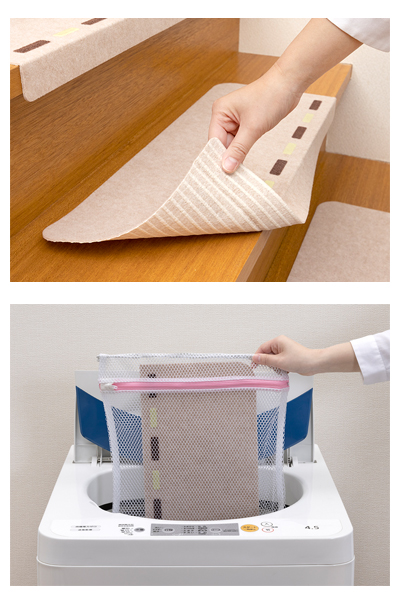 ・洗濯機で丸洗いできる、蓄光プリントを施した暗闇でも安心階段マット。