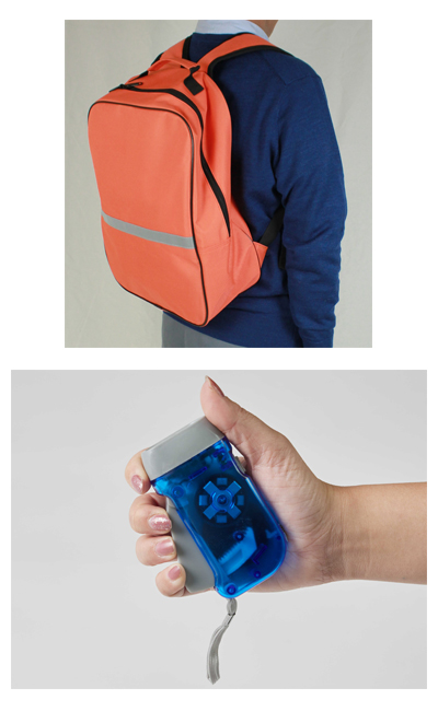 ●サイズ/リュック:41×31×15cm ●重さ/約1.2kg ●セット内容/リュック、万能カッター、ホイッスル、アルミブランケット、手動式懐中電灯、軍手、ロープ(3m)、アイマスク、耳栓、ネックピロー、小物入れ、洗濯ばさみ、結束バンド、スリッパ、レインコート、サランラップ(22cm×15m)、水に流せるティッシュ、ドライタオル、紙皿(18cm)、コップ270mL、紙ボール15cm、割りばし(個包装)、スプーン、ポリ袋、フォーク、マスク、歯ブラシセット、絆創膏、綿棒、コットン、ザブポンミニ、ウォーターコンテナバック6L、オイトイレ1回 ●生産国/日本、中国