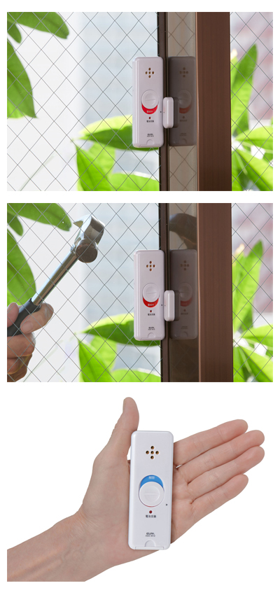 ・窓ガラスの衝撃と開放を検知して大音量で警報を発します。