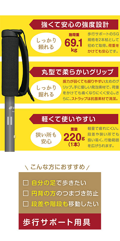 ・体重をかけても安心な新カテゴリー2本杖。