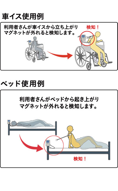 ・マグネットが外れると検知!離床・徘徊を知らせます。