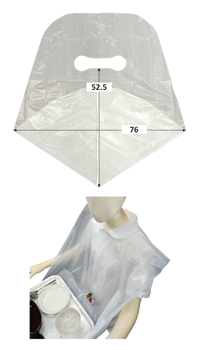 ・食べこぼしをキャッチできるポケット付きの使い捨て食事用エプロン。