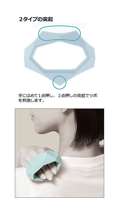 ・手にはめてツボを刺激します。2タイプの突起形状から押し心地を選べます。