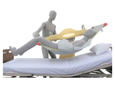 ・操作や手順は簡単。臥位から座位まで自由な角度と高さに調節でき、ベッド上での臥位姿勢のままで抱き上げることも可能です。