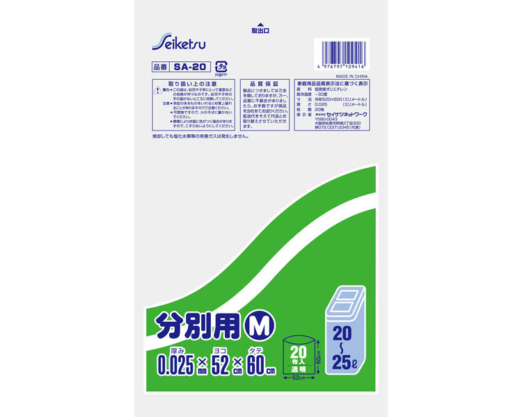 室内分別用ポリ袋M 20〜25L