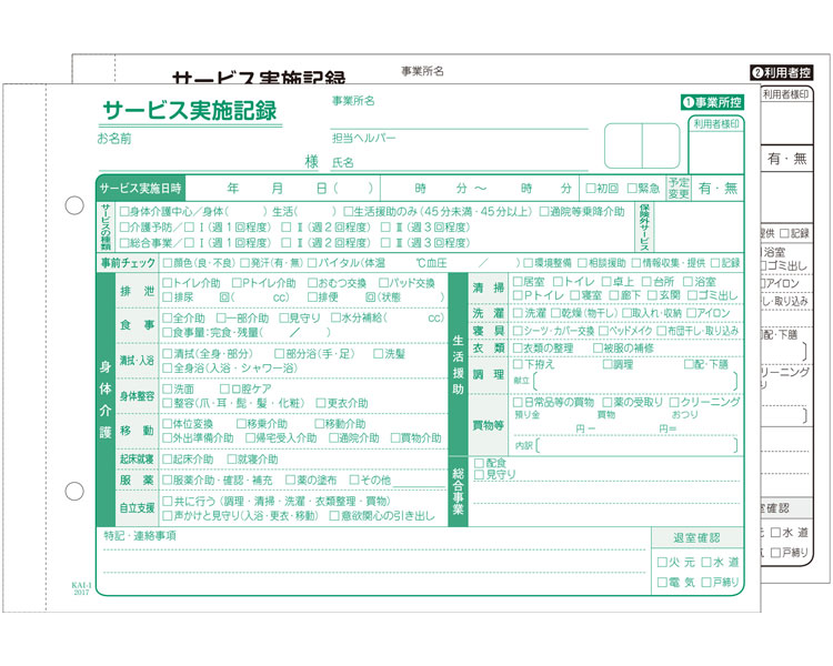 KAI-1N 訪問介護伝票(介護サービス実施記録