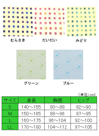●素材/むらさき・だいだい・みどり:綿100%、グリーン・ブルー:ポリエステル65%・綿35%