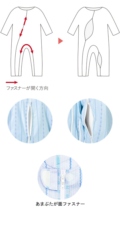 ソフトケアねまき フルオープン・両開きファスナータイプ スリーシーズン