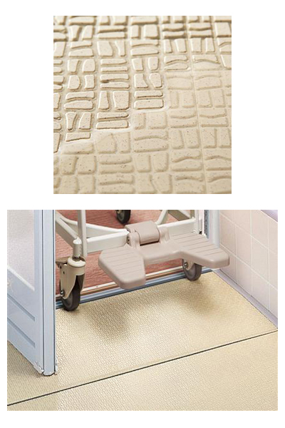・水滴残らず乾きも早い“カラリ床”。転倒の危険性が高い介護の現場にこそ。
