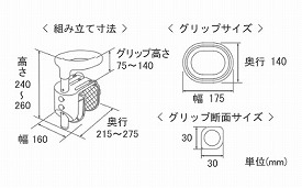 ●サイズ/幅16×奥行21.5〜27.5×高さ24〜26cm、グリップ高さ:8〜14cm
