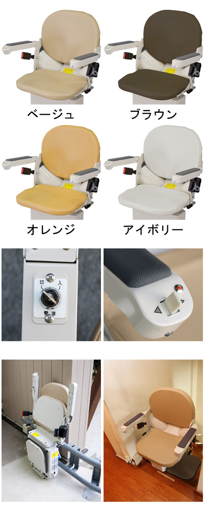 ・未使用時は座面・肘掛け・ステップを折りたたんでコンパクトに収納。階段の通行の妨げになりません。