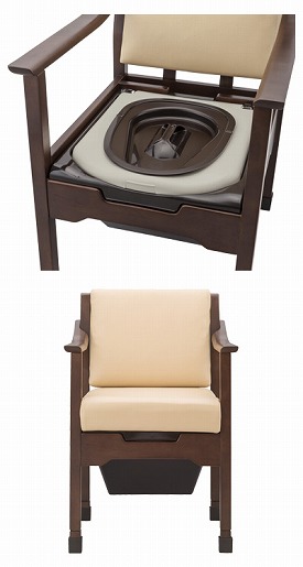 ●サイズ/幅50×奥行62×高さ72〜78cm、座面:幅36×奥行42.5cm、穴部:幅19×奥行31cm、便座高:32〜38cm(3段階/3cm)、ひじ掛け高:21cm、ひじ掛け内寸:40cm ●重さ/11.5kg ●材質/天然木(ラバーウッド)、合成皮革、ウレタンフォーム、ポリプロピレン、エラストマー ●バケツ容量/約9L ●最大使用者体重/100kg ●付属品/消臭シート試供品、便座カバー1枚 ●標準機能/オイルダンパー、防汚トレイ ●生産国/日本(木部:ベトナム) ●抗菌加工 ●SIAAノバロン配合 ●完成品