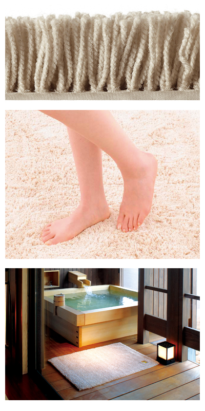 ・Ag+(銀イオン)を練り込んだ特殊なアクリル繊維のバスマット。すぐれた抗菌効果で、マットに付着したさまざまな菌をしっかり抗菌します。すぐれた吸水・速乾性で、最後の1人までサラッと快適。