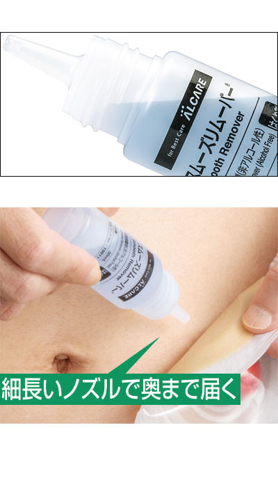 ・細長いノズルが、ストーマ装具の面板と皮膚の接着面の近くまで届くため、狙ったところへ簡単に滴下できます。